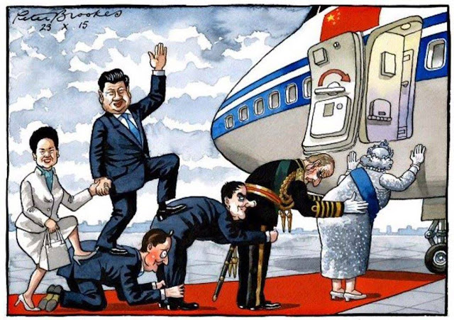 Tham khảo thêm luật pháp ở các quốc gia dân chủ, có lẽ không cần phải trình bày nhiều lời, chỉ với việc công chúng ở đó cảm thấy hết sức bình thường khi thưởng thức bức biếm họa (dưới đây), trong đó, hoàng gia Anh và chính phủ Anh gồm Nữ Hoàng Elizabeth II cùng thủ tướng của họ đang cúi rạp mình để làm nấc thang cho Tập Cận Bình bước lên máy bay thì đã đủ rõ về nền dân chủ của họ.