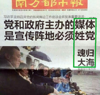 Bên cạnh những sự kiện hiếm hoi cho thấy báo chí của Cộng đảng phản kháng giới lãnh đạo, Bắc Kinh dường như rất nóng nảy bồn chồn hoang mang bực tức trước những lỗi nhỏ tình cờ vô phạt vô thưởng của giới truyền thông Nhà nước. Vào tháng Ba, một tờ báo tại chi bộ của Cộng đảng ở Quảng Đông, đã đăng trên trang nhất với hai tựa đề lớn nổi bật. Một tựa đề lửng lơ liên quan đến họ Tập thăm viếng các cơ quan truyền thông của Cộng đảng, tạm dịch như sau: " Báo chí truyền thông chỉ vì phải biết còn đảng là còn mình", phía dưới tựa đề này là tấm hình chụp cảnh thân nhân của một chính trị gia đem hài cốt người này ra biển với tựa đề lớn thứ hai, tạm dịch như sau: " Linh hồn an nghĩ " - Thế nhưng do lối viết sắp đặt theo chiều dọc theo thói quen viết chữ Hán thời xưa, hai tựa đề này đọc theo chiều dọc, không phải theo chiều ngang như văn tự Tây phương lại thành câu có nghĩa là: " Linh hồn báo chí truyền thông chết đi (an nghĩ) chỉ vì phải biết còn đảng là còn mình ("chết đi" đồng nghĩa với "an nghĩ" nhưng thiếu trịnh trọng lịch sự) Một thí dụ khác chẳng hạn, Tân Hoa Xã có một bài báo đánh máy bị lỗi cho nên thay vì là ca ngợi họ Tập lên tận chân mây với tựa đề: " Lãnh đạo CAO CẢ của Trung Quốc" lại đánh máy bị trật in ra thành " lãnh đạo CUỐI CÙNG của Trung Quốc" do "cao cả" và "cuối cùng" đều cùng âm “zui" trong tiếng Hán (“zuigao” - cao cả thành “zuihou”- cuối cùng.) Xin coi hình chụp lại dưới đây, đóng trong khung xanh: