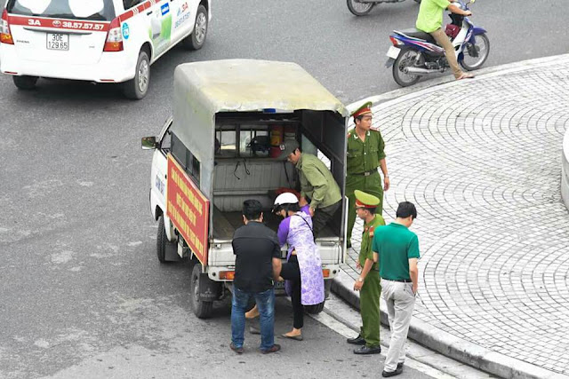 Những hình ảnh một bạn chụp được tại đài phun nước sáng nay khi chúng vây bắt chị Thuy Nga. Ảnh Facebook Thao Teresa